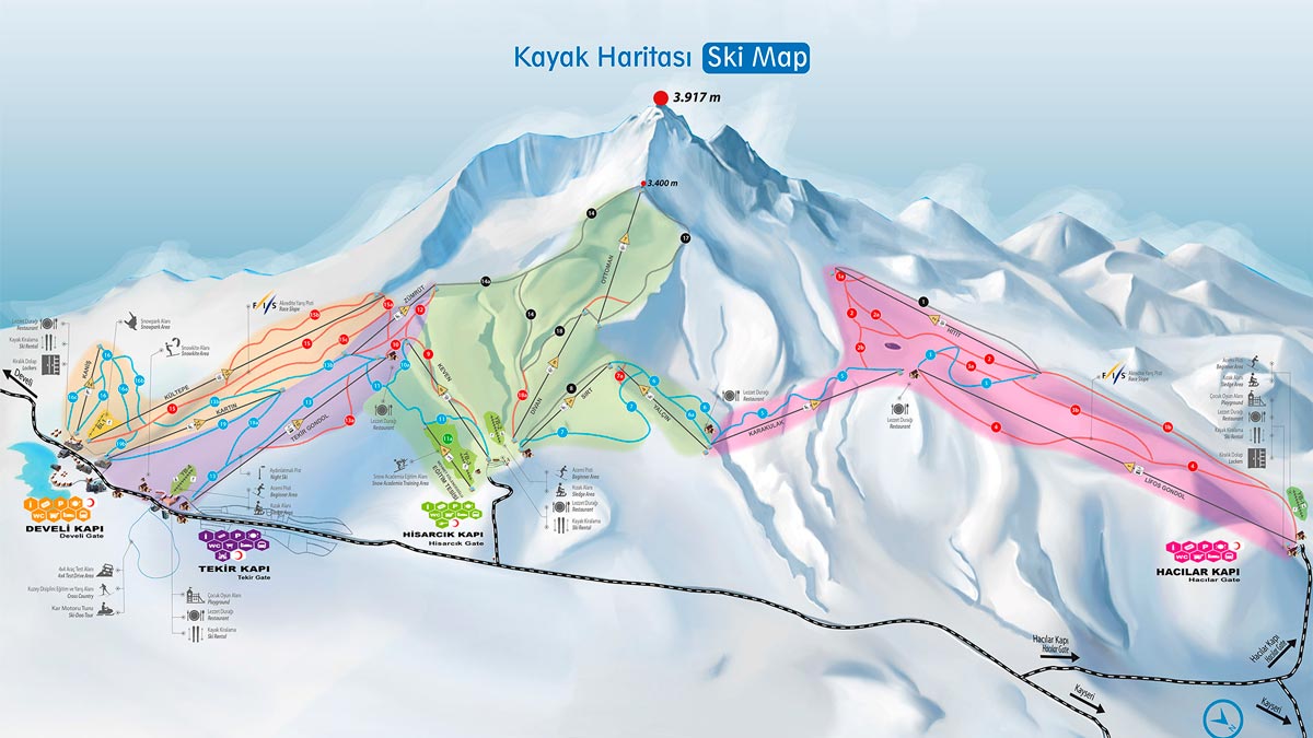 Erciyes Kayak Merkezi Kapıları & Pistleri