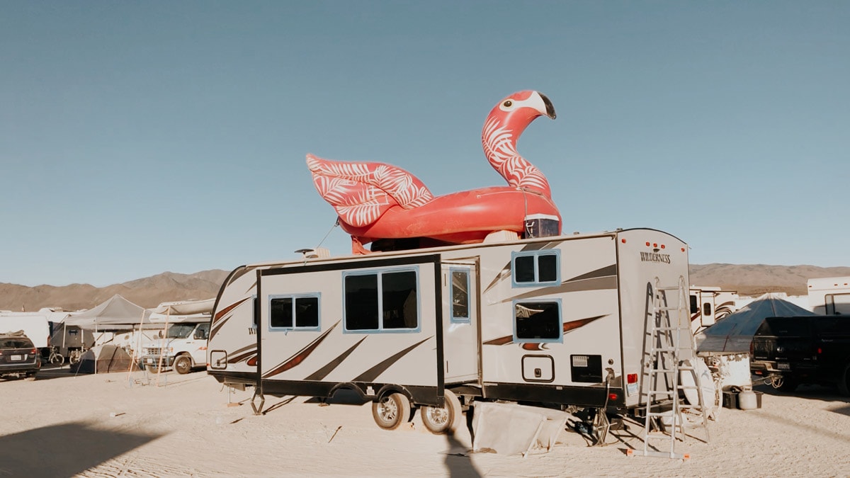 Camper Van – Without a doubt, the most comfortable option is staying in a camper van. It has a bathroom and a kitchen, a wastewater management system… You can also use its built-in air conditioning if you bring a generator. 30% of Burning Man participants prefer camper vans. But rental companies tend to jack up their prices around the time of Burning Man. So rental fees start from $5,000 per week.