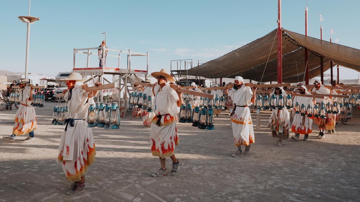 The road to “The Man” needs to be illuminated with lanterns every night. In 1993, this turned into a tradition. Every year 1,000 people volunteer to for this task. It has a symbolic meaning, just like the Olympic torch. If it is your first time at Burning Man and you don’t know what to volunteer for, this is the right place to start. You can find the information for volunteering here.