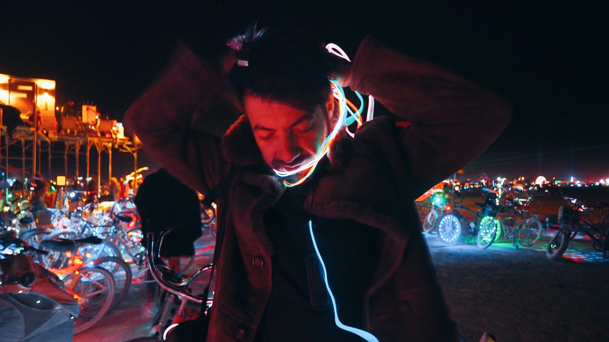 I would also recommend accessories like LED gloves, capes or strings. It’s so much fun to play with them in the deep dark desert. Make sure to bring extra batteries! They run out fast!