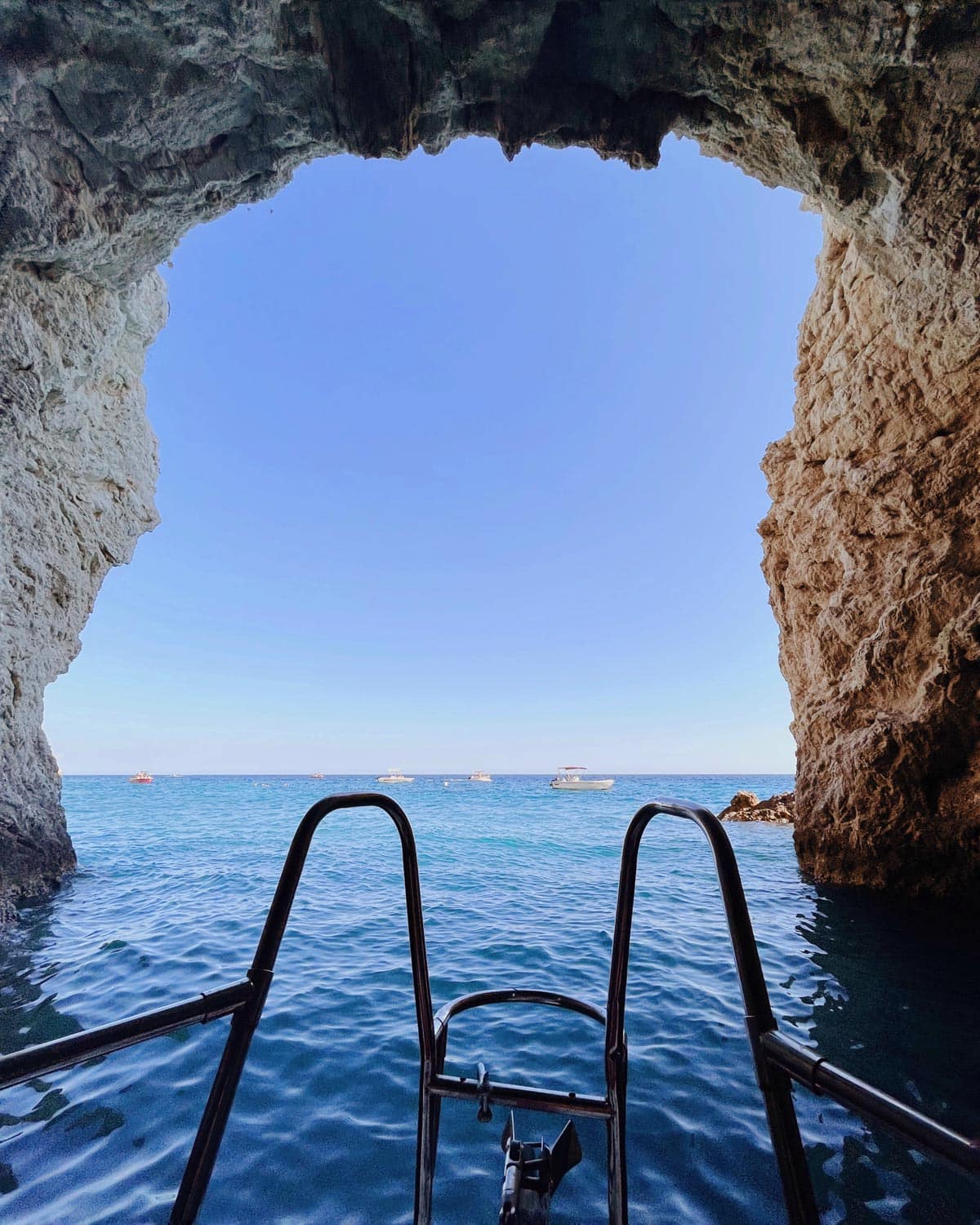 Her ne kadar adanın kuzeyinde mavi mağaralar doymuş olsak da adanın güneyindeki mağaralara da bir şans vermemek olmaz. Burada da denizin rengi ve kireçtaşı falezler inanılmaz. Mağaralara küçük teknelerle girip şnorkelle yüzebilirsiniz. Konum için tıklayın. Haritada 11 numara.