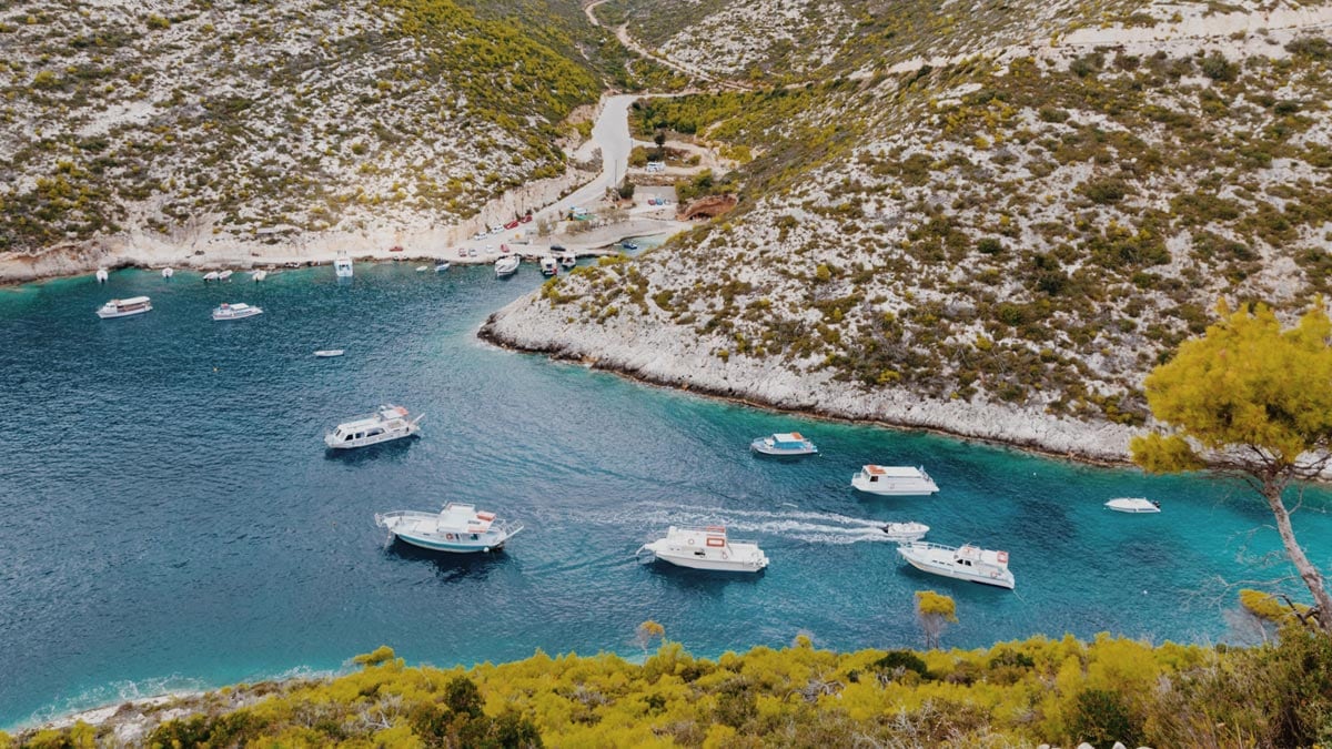 1. Camgöbeği suları ile ünlü Navagio Plajı’na ve mavi mağaralara doğru tekne turu yapmak.