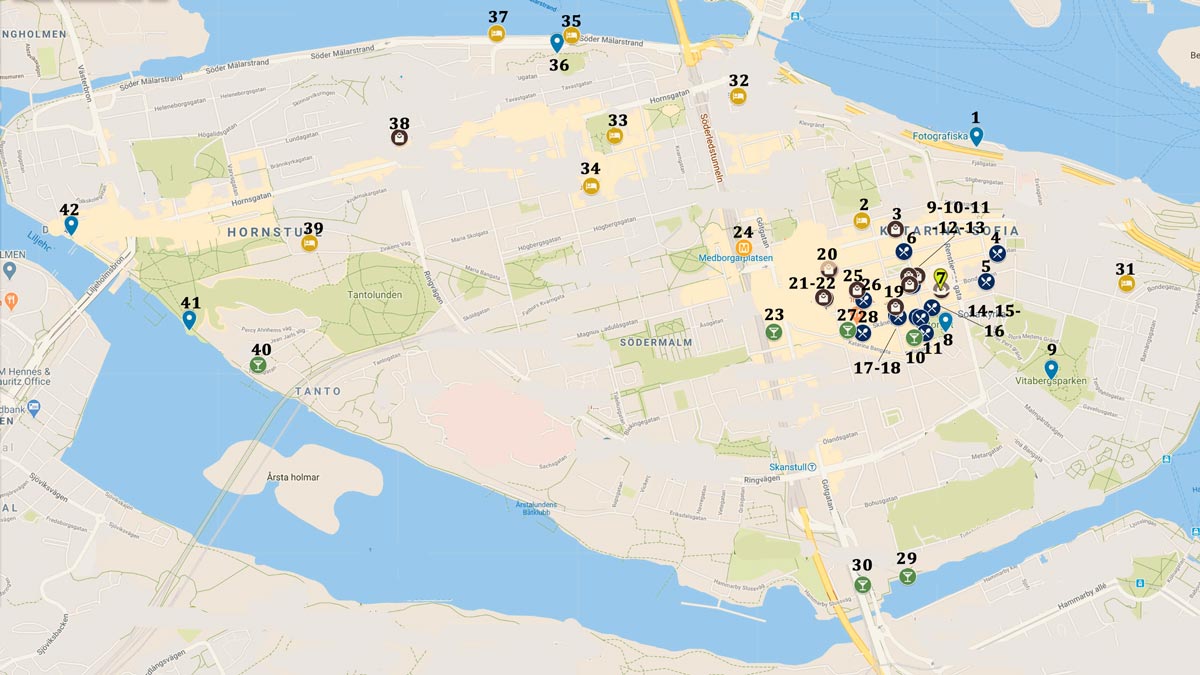 A brief look at the map will quickly hint that you will be spending most of your time in SoFo. With that said, there are a few noteworthy stops on the outskirts of the island, mostly bars and Fotografiska, a must-see photo gallery.