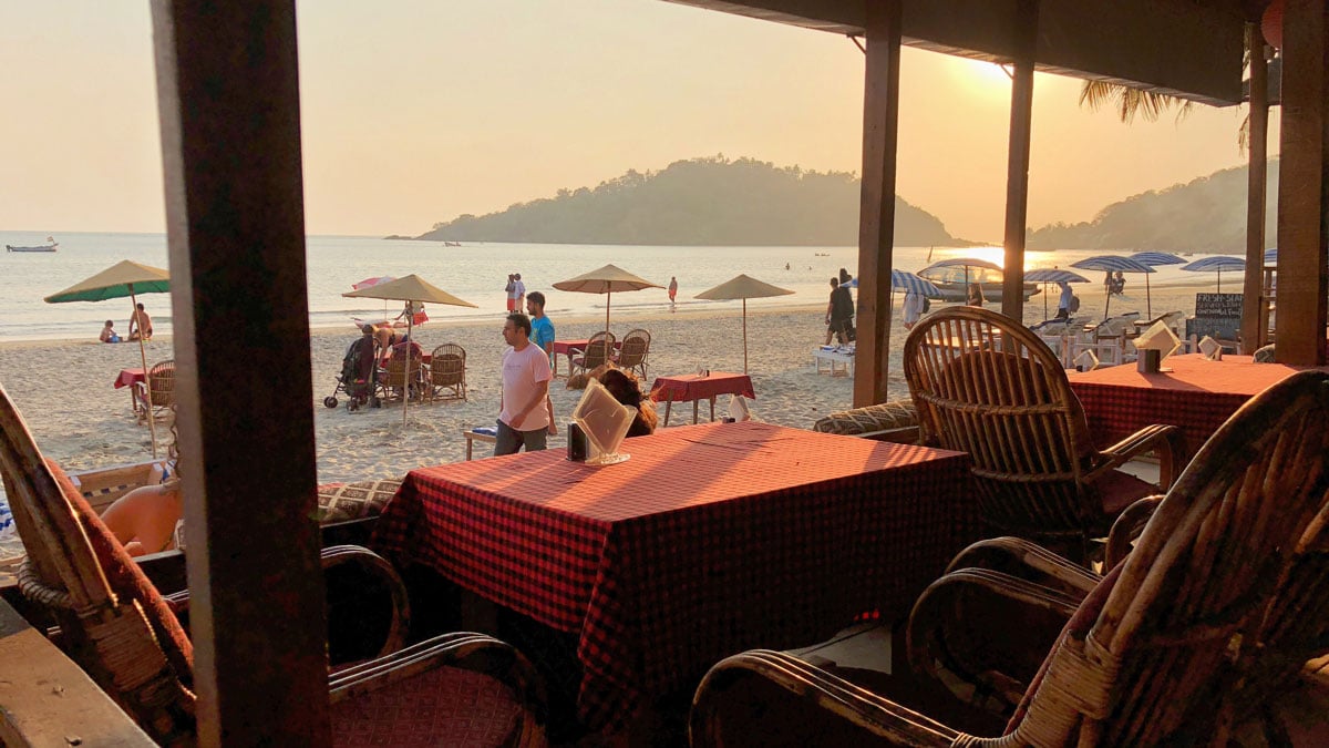 Sundowner is the most popular place in Palolem Beach, and, as the name suggests, is a legendary sunset hangout. The secluded beach bar located right on the water is perfect for its simplicity, sunset views, and music playlist. If you get hungry, there’s also pizza on offer and regular weekend parties. Weekdays offer more of a relaxing pub vibe. When we arrived a number of bungalows were being constructed here that should have been completed by now.