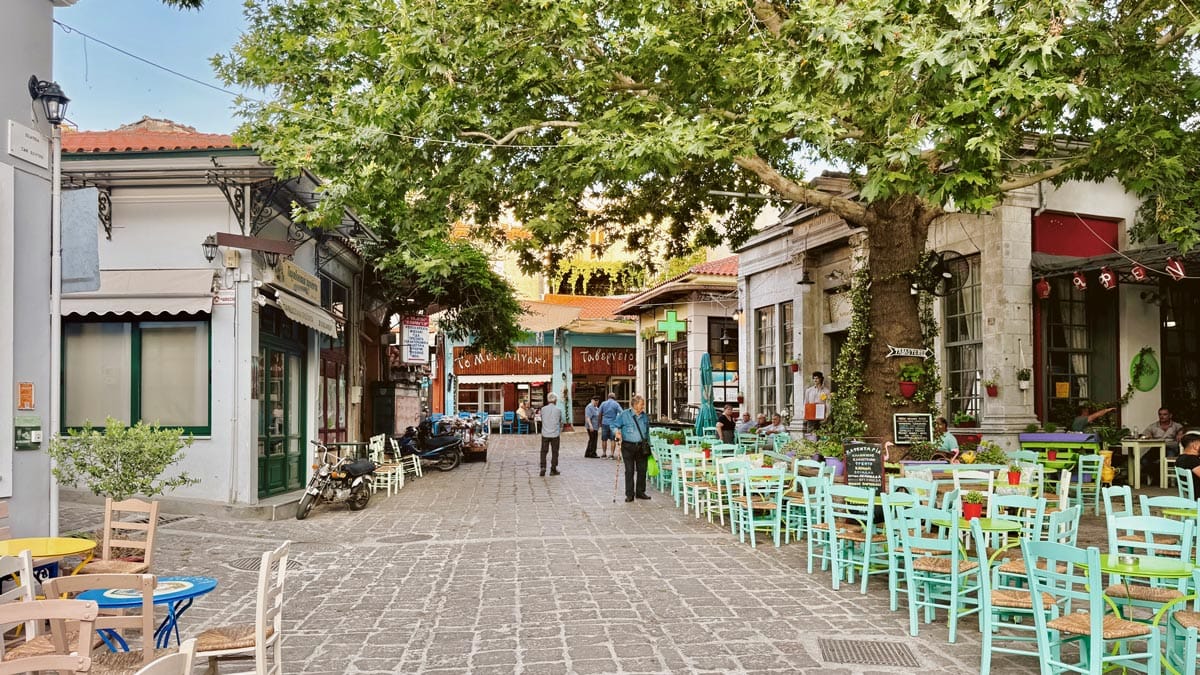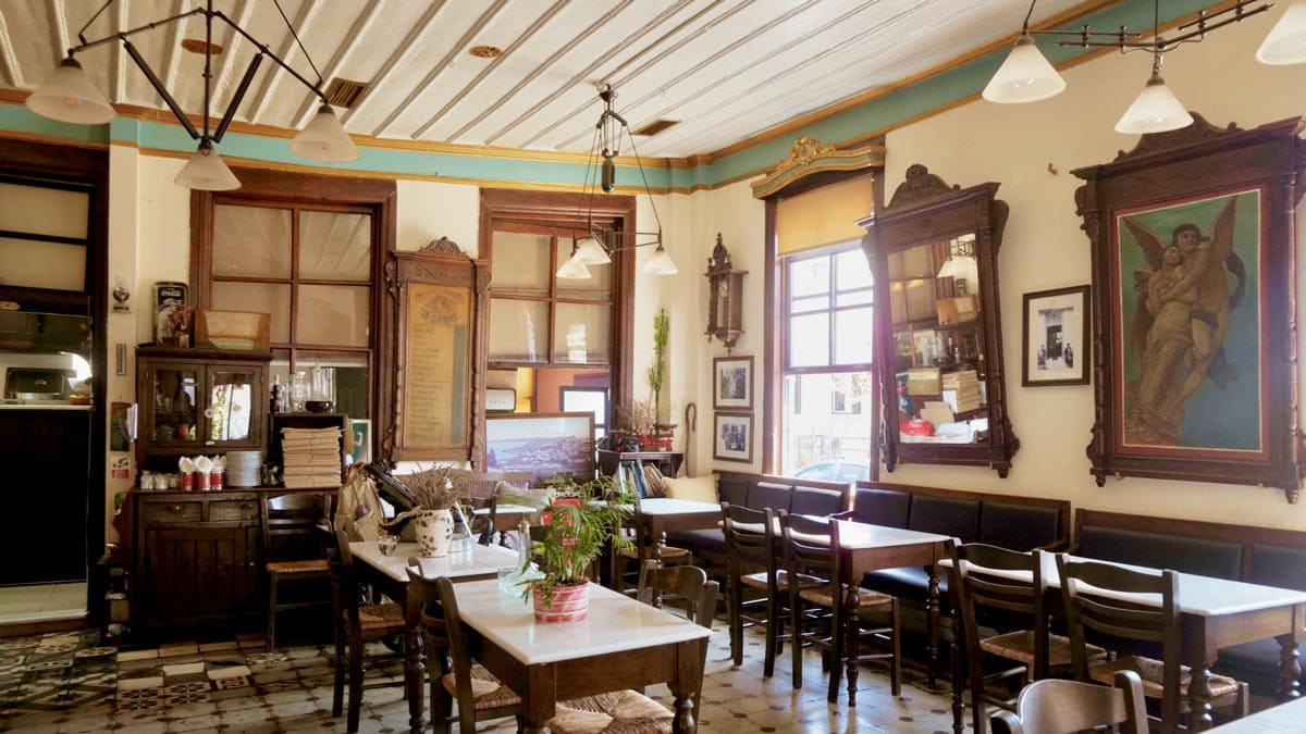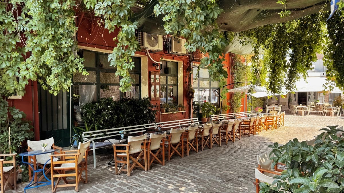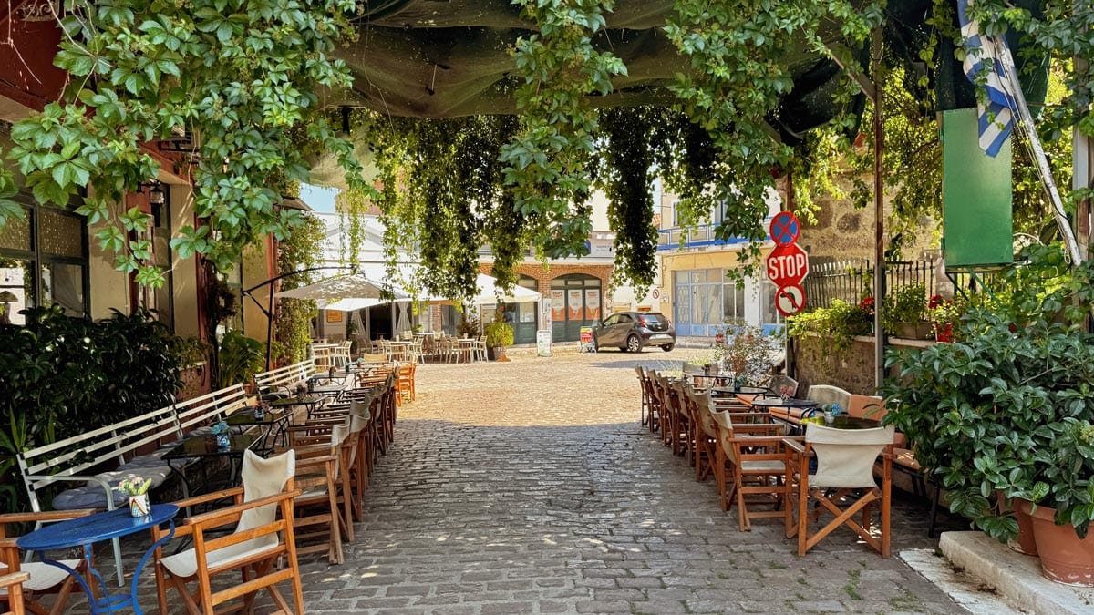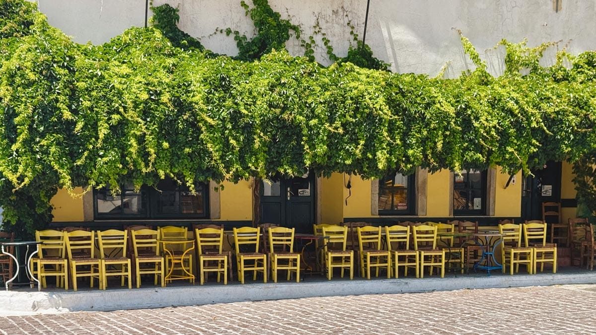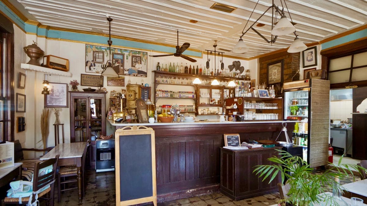 Kafentaria, Agiasos: Panagia tis Agisaou Kilisesi’nin hemen yanında bulunan sevimli bir kafe. Arnavut kaldırımlı sokaklardan gelip geçeni izleyebileceğiniz Yunan adalarına özgü yeşil renkli sandalye ve masaları var. Menüsü de el yapımı tatlılardan, kahve limonata gibi içeceklerden oluşuyor. Tercih etmek isterseniz kahvaltısı da var. Konum için tıklayın. Haritada 59 numara.