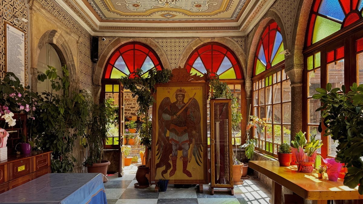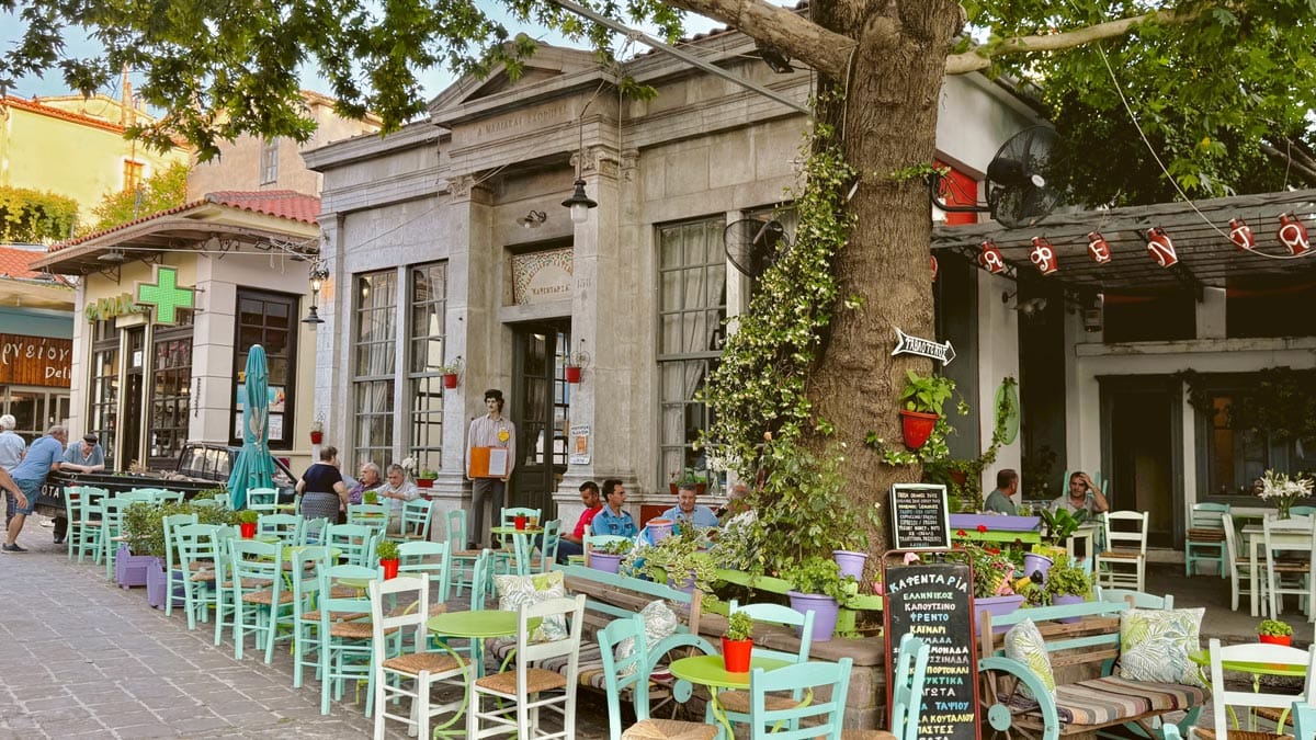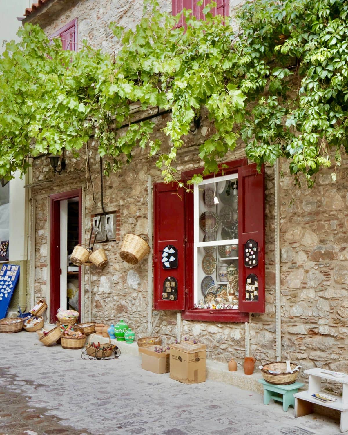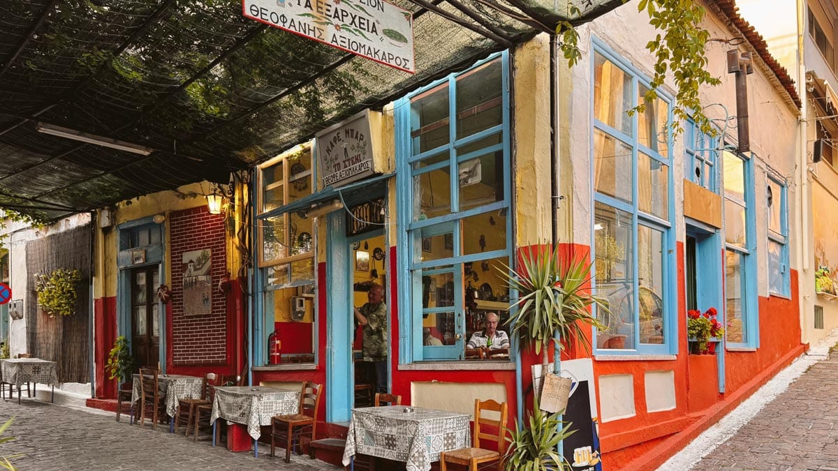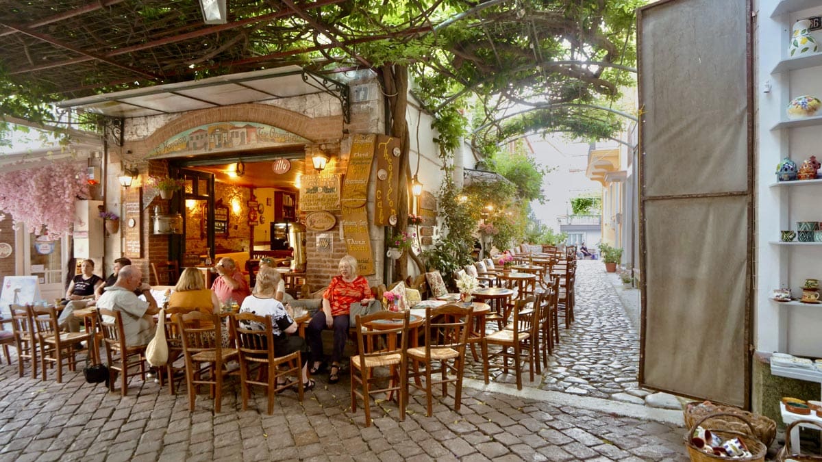 Kafentaria, Agiasos: Panagia tis Agisaou Kilisesi’nin hemen yanında bulunan sevimli bir kafe. Arnavut kaldırımlı sokaklardan gelip geçeni izleyebileceğiniz Yunan adalarına özgü yeşil renkli sandalye ve masaları var. Menüsü de el yapımı tatlılardan, kahve limonata gibi içeceklerden oluşuyor. Tercih etmek isterseniz kahvaltısı da var. Konum için tıklayın. Haritada 59 numara.