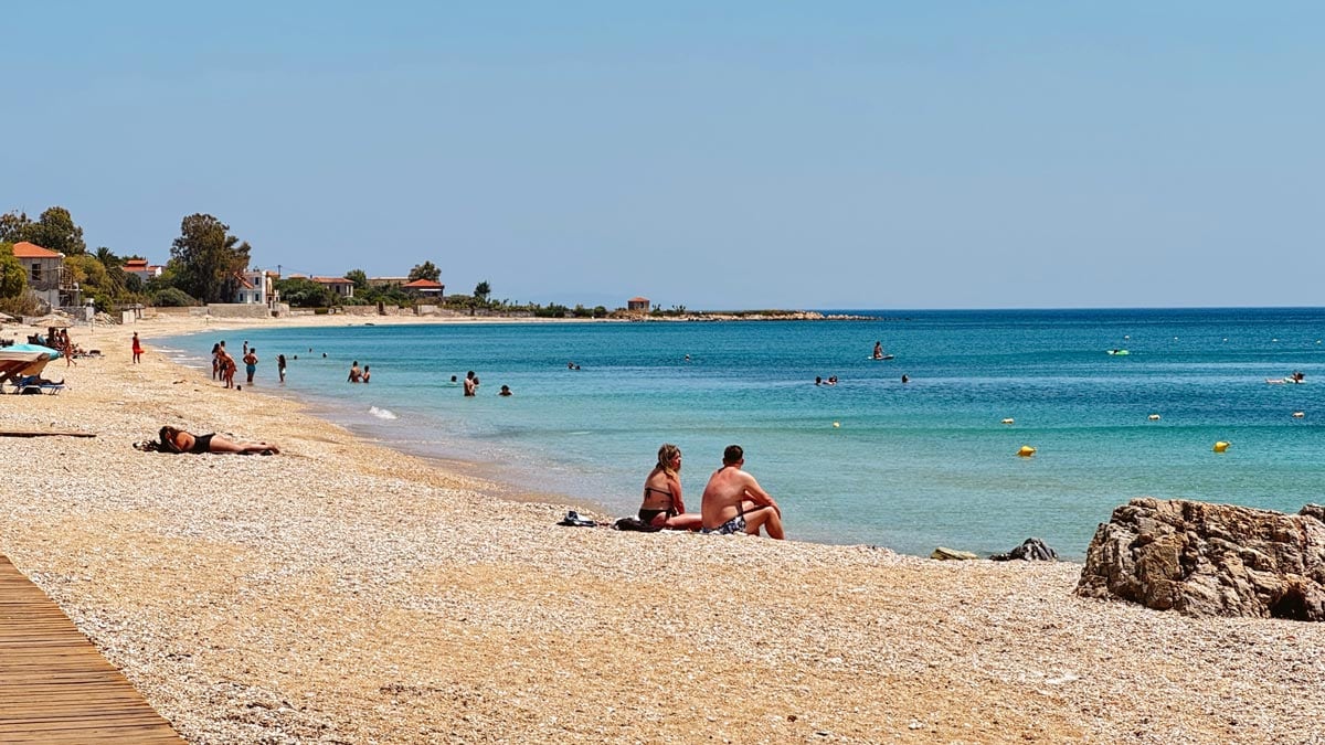 – Melinta Plajı: Kartpostallık koca bir kayanın eşlik ettiği kendine has, sakin bir plaj. Suyu dingin ve cam gibi. Denizin dibi ve plajı tamamen taşlık. Deniz ayakkabısını unutmayın. Çevresindeki birkaç taverna dışında çok fazla işletme yok. Otopark sorun olmuyor. Burada paddle board kiralayan ve sizi tekne ile yakınlardaki gizli yüzme noktalarına götüren bir kulübe de var. Konum için tıklayın. Haritada 18 numara.