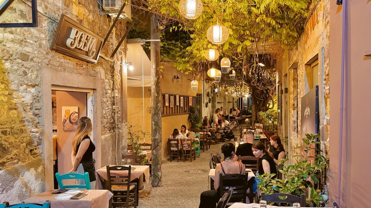 Kalderimi, Petra: Eski şehirden sahile doğru yürürken karşınıza çıkacak bir gyros restoranı. Izgara etler, salata, makarna ve ana yemek çeşitleri bulmak da mümkün. Büyük bir bahçede bolca oturma alanı bulunan uygun fiyatlı bir seçenek. Konum için tıklayın. Haritada 43 numara.