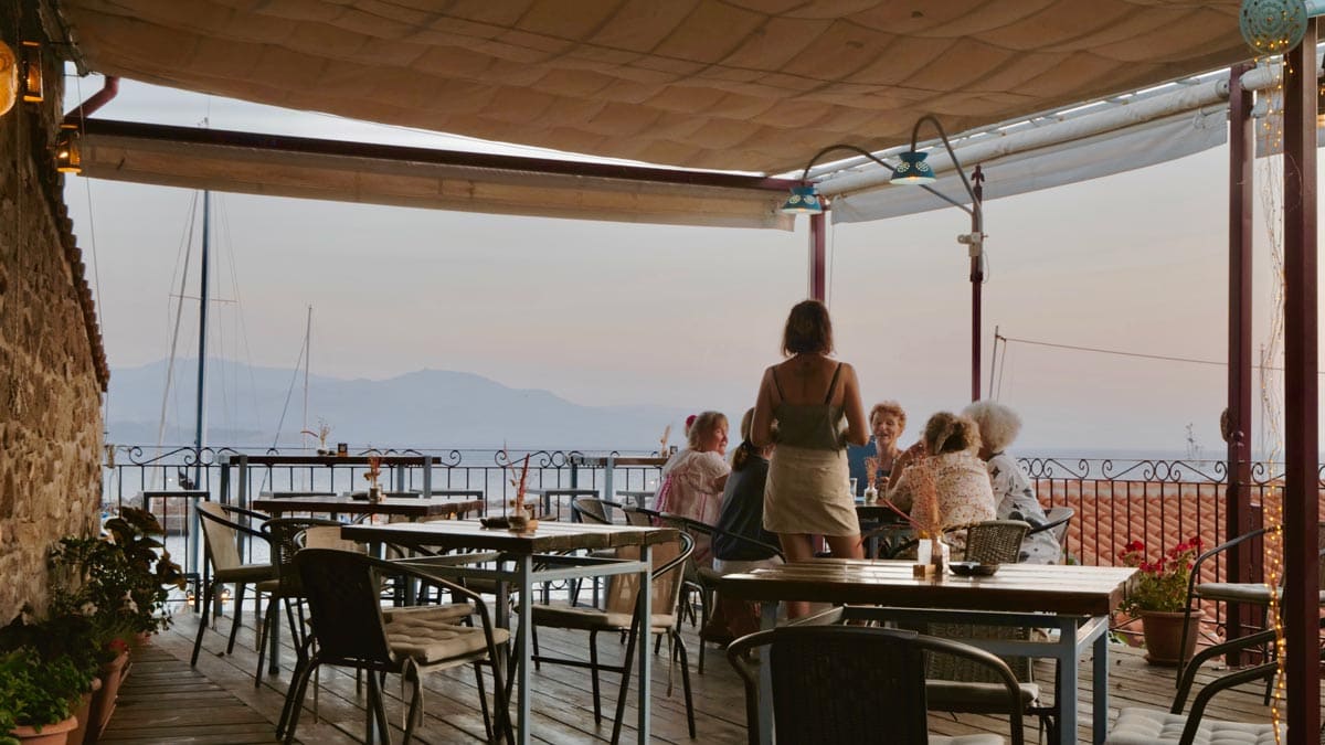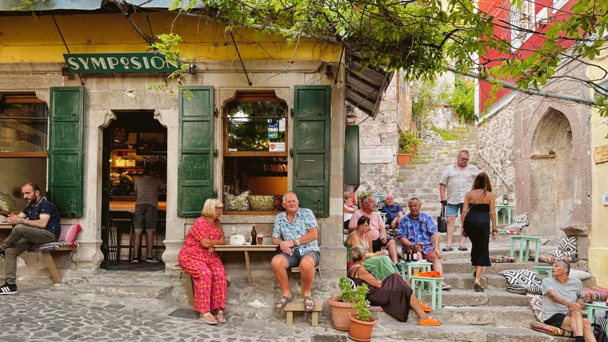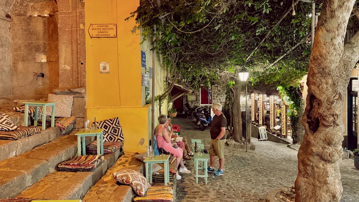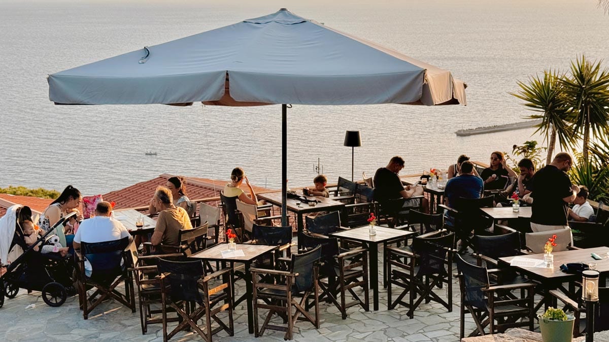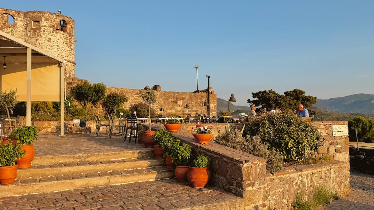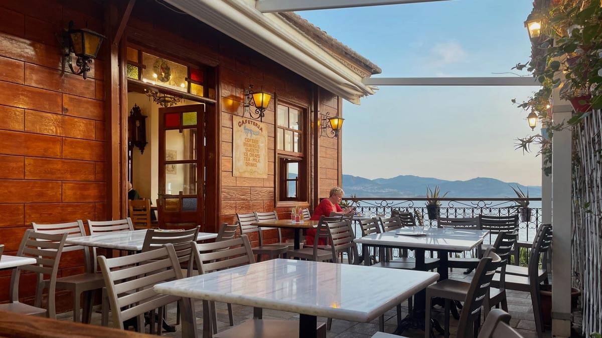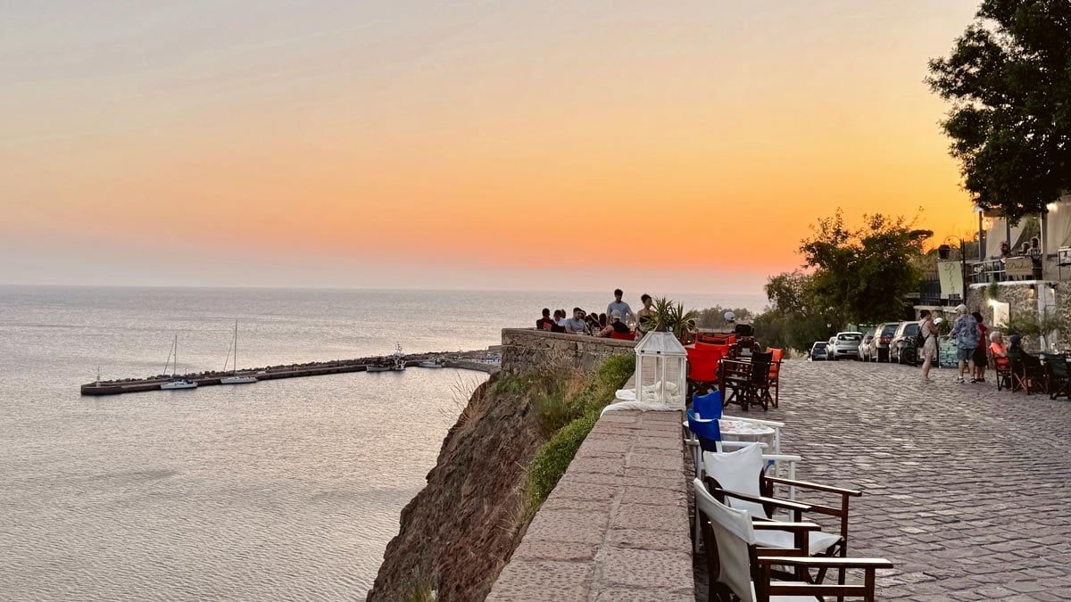 – Panorama, Molyvos: Molyvos Kalesi’nin çıkışında kalan bir kafe. Adının hakkını veren panoramik bir gün batımı manzarası sunuyor. Atıştırmalık yiyecekler de var. Konum için tıklayın. Haritada 33 numara.