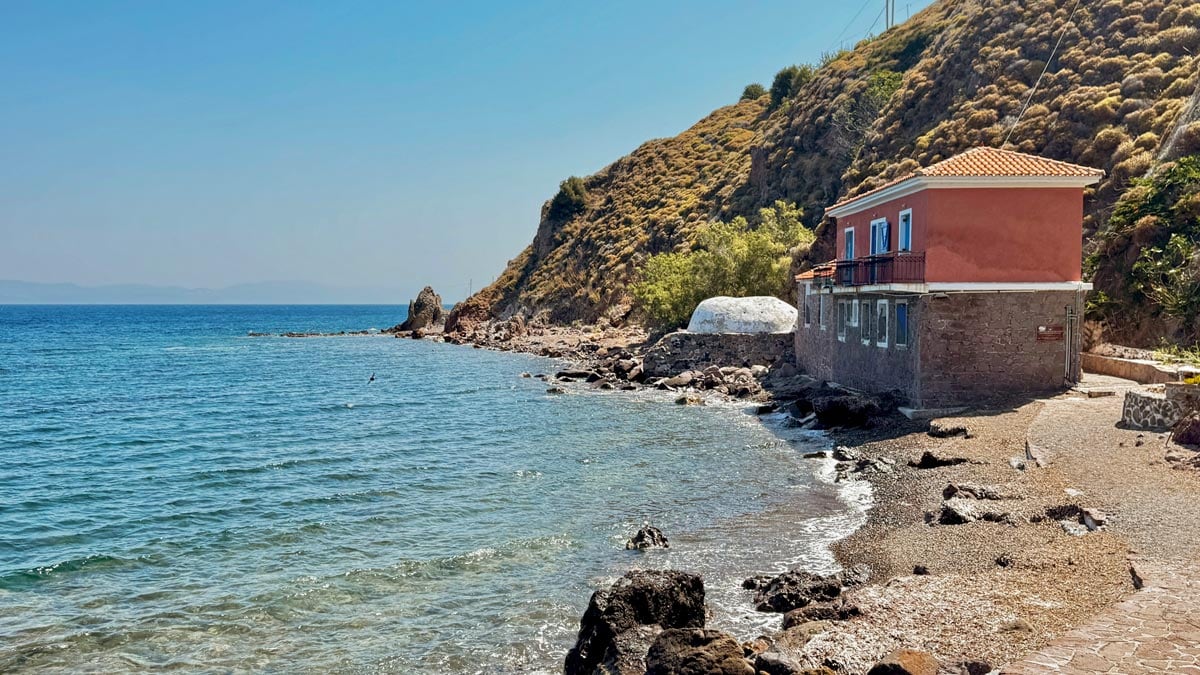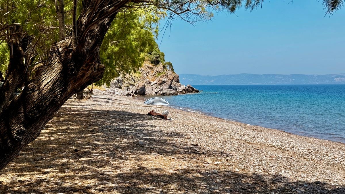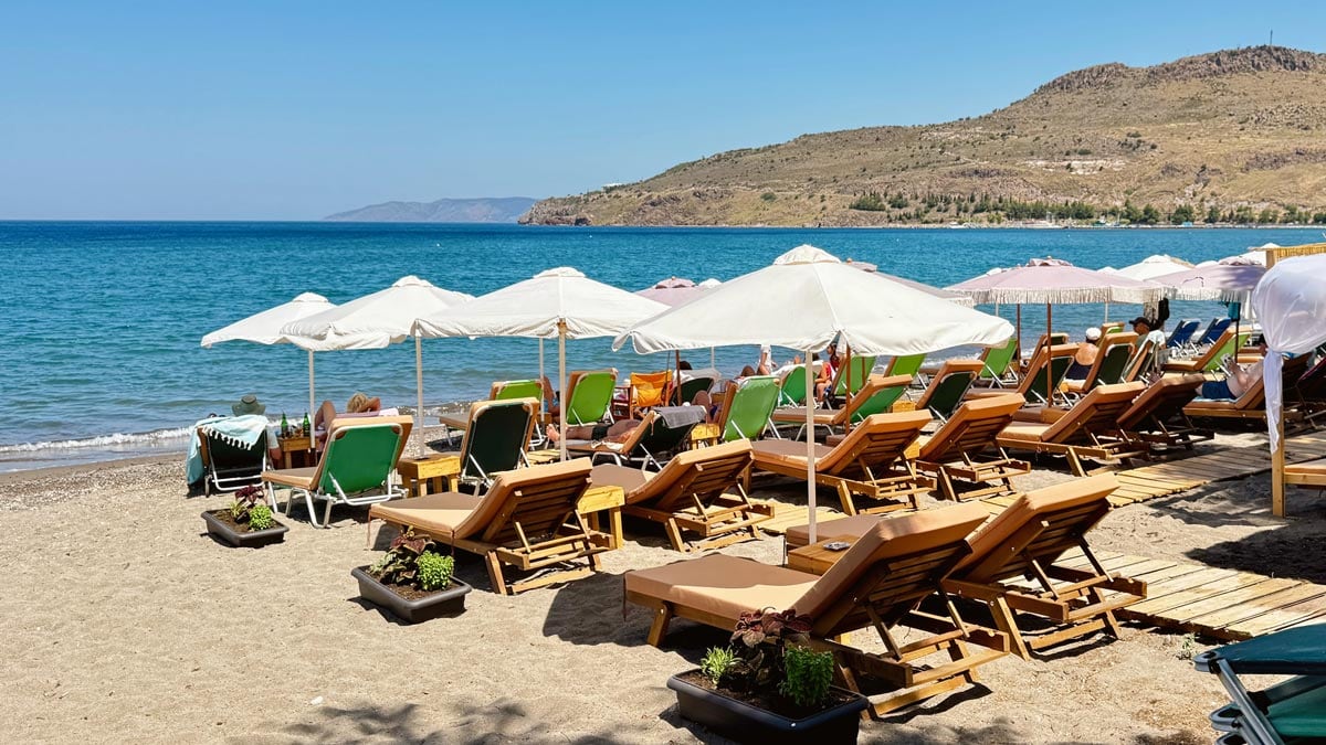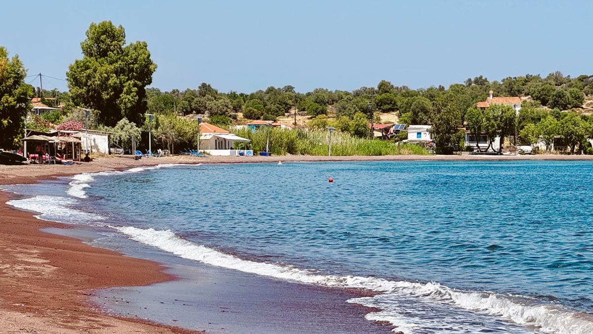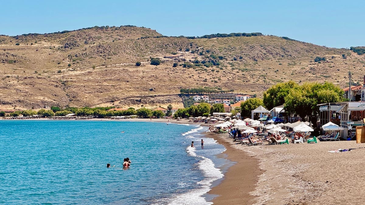 Agios Isidoros Plajı: Plomari köyünde bulunan bu mavi bayraklı plaj bizce güney Midilli’nin en güzel denizi. Çakıl taşlı bir plajı var, suyu berrak ve temiz. Yakınlarında kafeler de bulunuyor. Hepsi kendilerinden bir şeyler aldığınız sürece ücretsiz şezlong sağlıyor. Sabah saatlerinde çarşaf gibi olan deniz öğleden sonra biraz dalgalı olabiliyor. Park yeri gibi sorunlar yok. Konum için tıklayın. Haritada 14 numara.