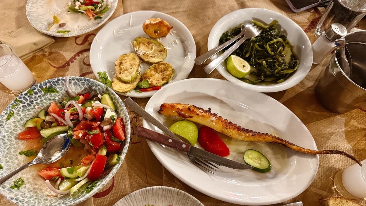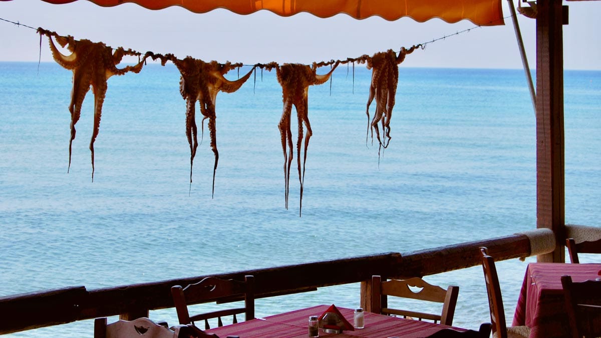 – Güneşte Kurutulmuş Ahtapot: Yunan adalarının klasik görüntüsü olan ipe asılarak güneşte kurutulmaya bırakılmış ahtapotlar adanın her yerinde rastlayabiliyorsunuz. Bizce ızgarası en makbul ama menülerde şarapta ahtapot veya ahtapot salatası gibi farklı versiyonları da var.