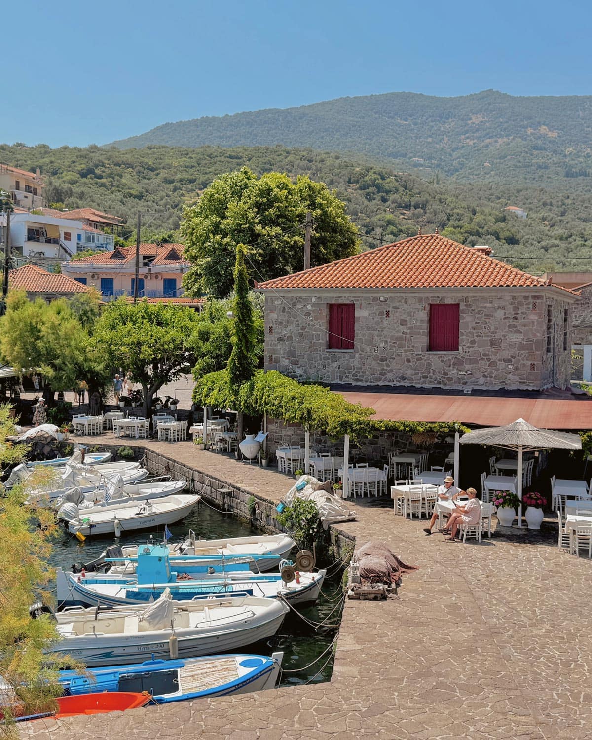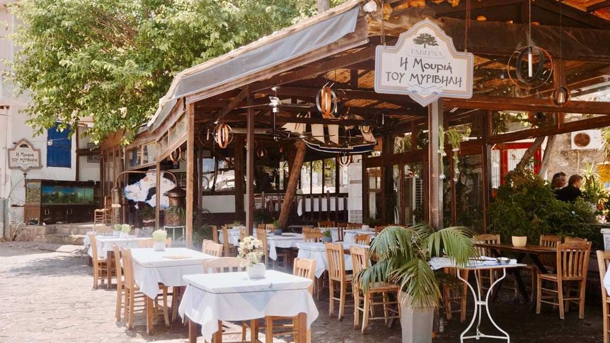 – I Mouria tou Mirivili, Skala Sikamineas: Skala Sikamineas’ın ünlü restoranı. “Mirivilis’in dut ağaçları” anlamına gelen ismi Midillili yazar Stratis Mirivilis’ten geliyor. Panagia Gorgona kilisesini de gören bir liman manzarasına sahip. Kalloni sardalyası, karides saganaki ve ahtopot ızgarası ünlü. Konum için tıklayın. Haritada 44 numara.