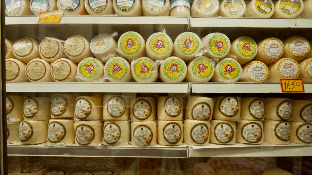 – Ladotiri Peyniri: Yunanca’da “yağ peyniri” anlamına gelen, Midilli’ye özgü coğrafi işaretli bir peynir. Koyun sütünden yapılanı makbul fakat keçi sütü de katılabiliyor. Sert ve yoğun bir dokusu var. Piştikten sonra aylarca zeytinyağında bekletildiği bir sürece giriyor. Yağ peyniri denmesinin de sebebi bu aslında. Meze tabaklarına genellikle saganakisi giriyor.