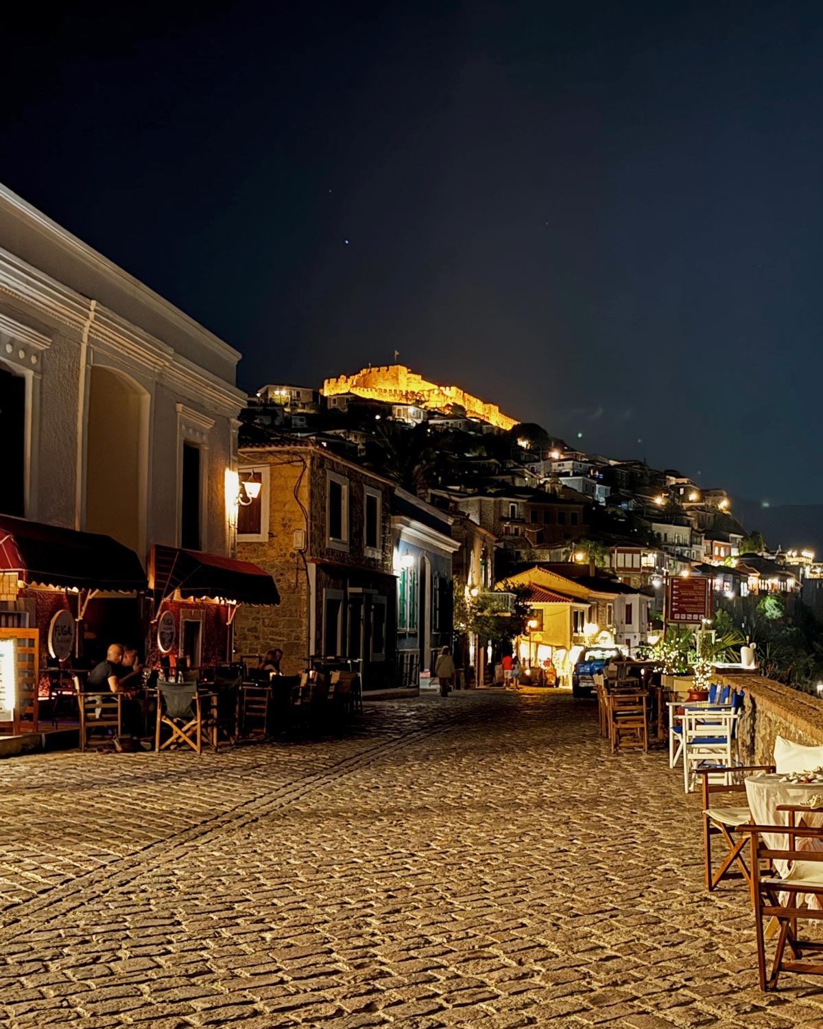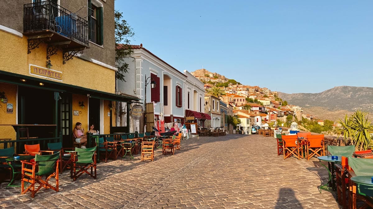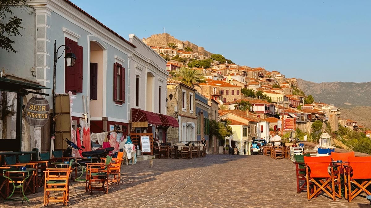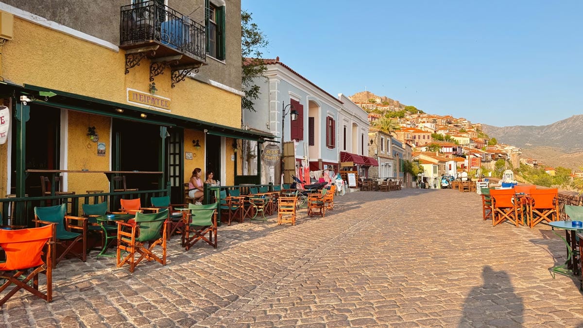– Favorimiz Molyvos: İster aile olun, ister çift bizce konaklamak için ideal yer kalesinin tepede bir inci gibi parladığı kartpostallık görünümüyle Molyvos (diğer adıyla Mithymna). Taş evlere ve dar Arnavut kaldırımlı sokaklara sahip şirin bir ortaçağ yerleşimi olduğu için hem çehresi sempatik, hem de popüler tavernaları olsun, sokak arasında şirin barları olsun, gün batımı manzaraları olsun bizce adanın açık ara en romantik noktası. Adanın en nitelikli işletmeleri burada diyebiliriz. Çocuklu aileler için deniz kıyısında otellere sahip olması da bir avantaj. Mytilini kadar büyük olmaması da çocukla kolayca hareket edebileceğiniz anlamına geliyor. Ufak olsa da yeteri kadar yeme-içme ve otel seçenekleri de var. Tek dezavantajı adanın en kuzey noktası olması sebebiyle merkeze en uzak bölgelerden biri olması. Son olarak, Jalem Tur, Ayvalık’tan Molivos’a yaklaşık 75 dakika süren direkt feribot seferleri de düzenliyor.