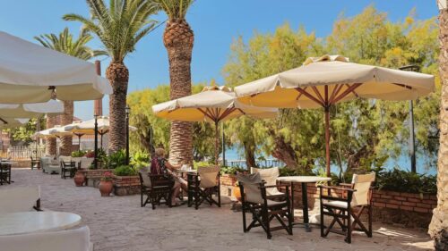 Poseidon, Kagia: Kagia Plajı’nda bulunan geleneksel bir taverna. Samimi ve sakin bir atmosferi var.  Deniz kenarında, ağaçlarla çevrili olan atmosferik bir işletme. Konum için tıklayın. Haritada 48 numara.