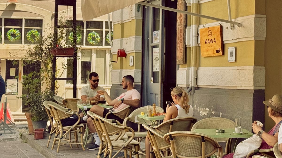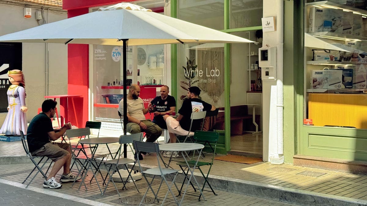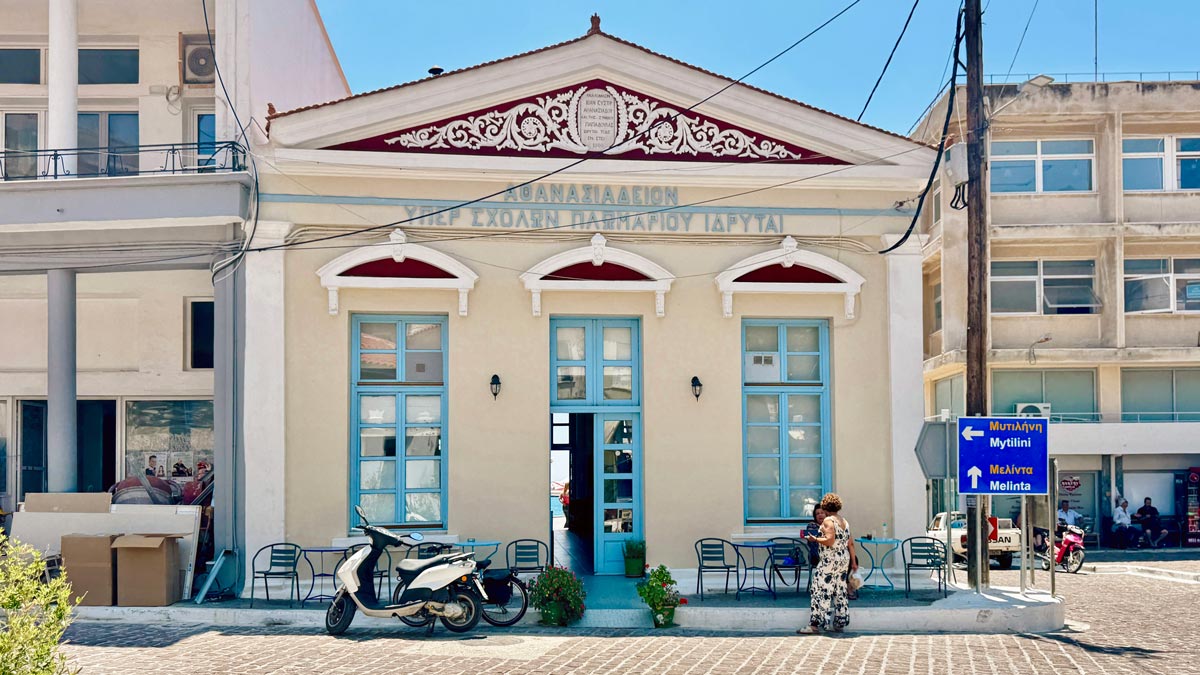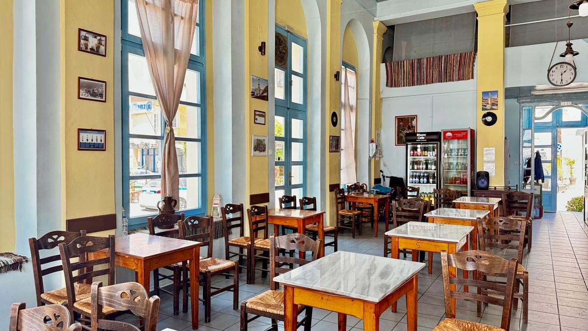 – To Megalo Kafé, Plomari: Dış cephesine pastel sarı ve mavinin eşlik ettiği tarihi bir binada bulunan kafe. Oldukça küçük, samimi ve kendi halinde. Bir caddenin köşebaşında bulunuyor, bu yüzden güne tatlı bir mola verildiğinde oturup, yoldan gelip geçenleri izlemek için ideal. Konum için tıklayın. Haritada 53 numara.