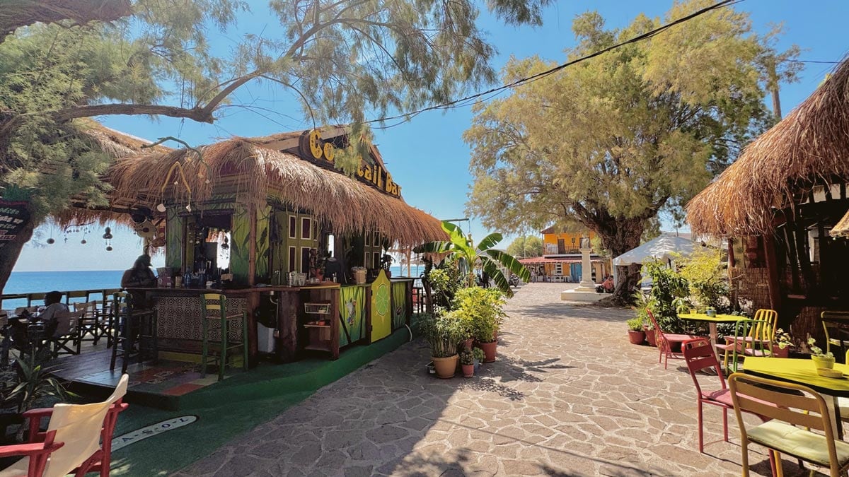Parasol, Skala Eresou: Plajı kenarında 1997’den beri hizmet veren bir kokteyl bar. Tropikal ada estetiğiyle dekore edilmiş. Canlı dj etkinlikleri de düzenleniyor. Menüsünde Meksika mutfağından tacos, guacamole, nachos gibi seçenekler de var. Konum için tıklayın. Haritada 50 numara.