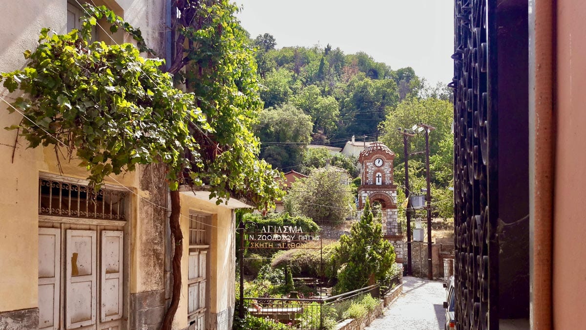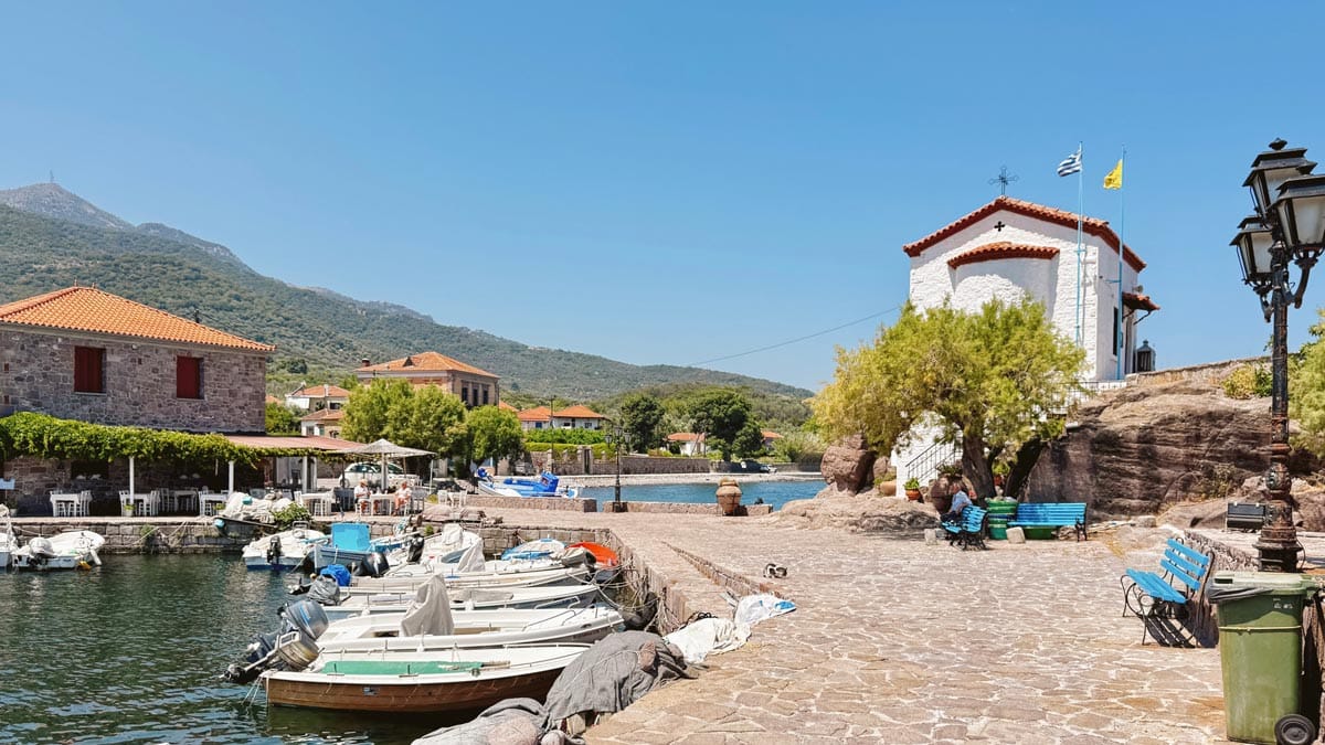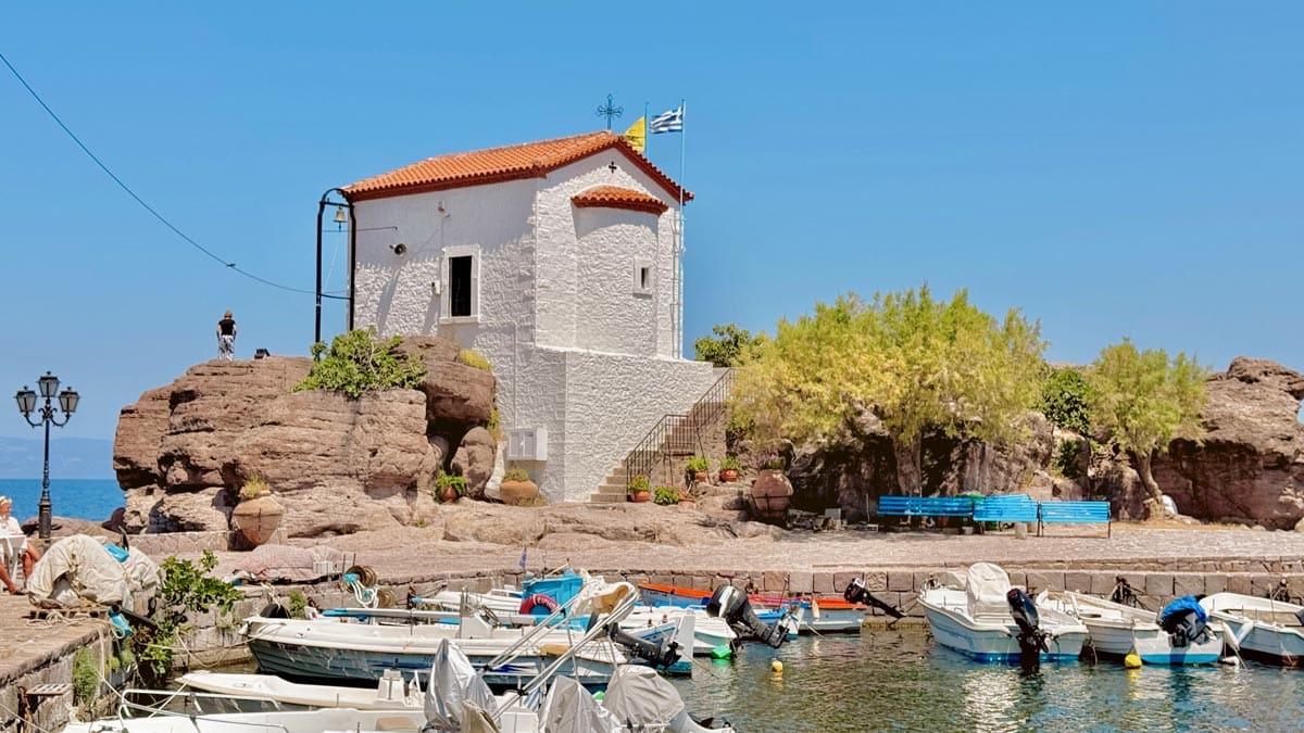 Dar taş sokakları, balkonlarını çiçeklerin süslediği geleneksel mimarili evleri, şirin kiliseleri, önünde Yunan amcalar ve teyzelerin oturduğu kahvehaneleri, tüm sokakları gölge yapan çınar ve kestane ağaçlarıyla Agiasos açık ara Midilli’nin en güzel dağ köyü. 475 metre rakıma sahip olduğu için en tepe noktasından güzel bir doğa manzarası da var. Kesinlikle zaman ayırıp görülmeye değer bir yer deniz tatilinize ara verip köy meydanındaki taş kahvede bir şeyler içmeye gelin deriz. Konum için tıklayın. Haritada 26 numara.