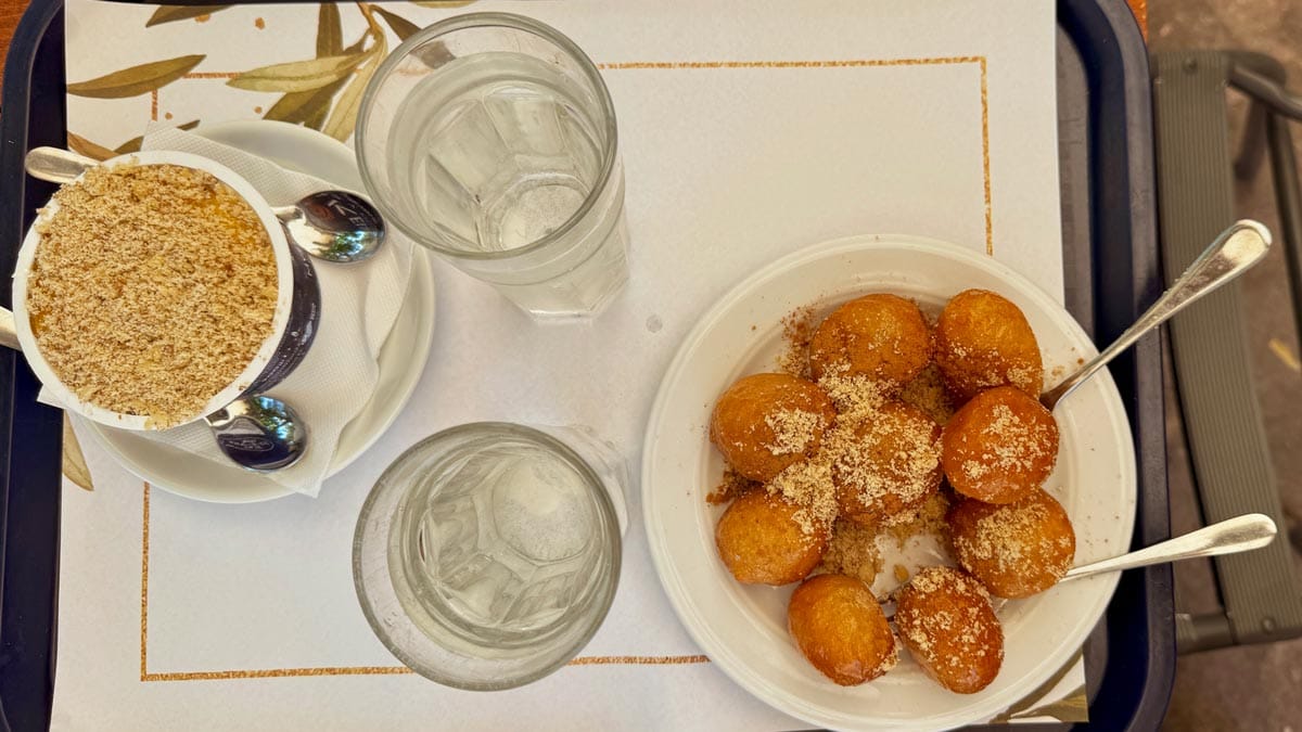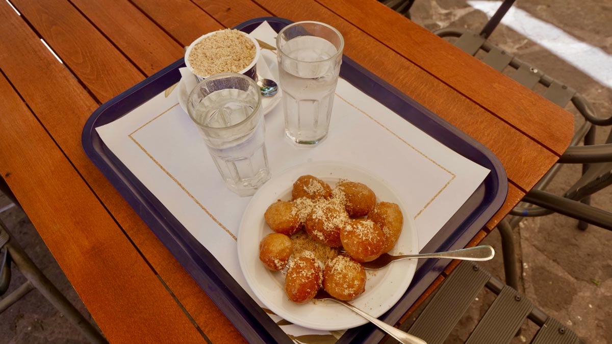 Lokma: Yunanistan’da özellikle dini bayramlarda ve panayırlarda servis edilen lokma, bizim de aşina olduğumuz klasik lokma aslında. Taze kızartılmış hamur toplarının üzerine tercihen eklenen bal, tarçın ve fındık kırıntılarıyla servis ediliyor. Midilli’de Taksiarhis Manastırı’nın bahçesi ufak bir lokma molası vermek için ideal.