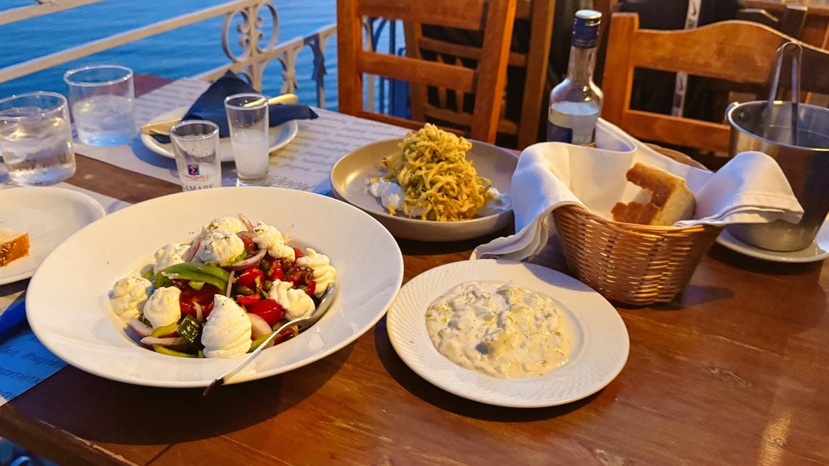 – Kagia Fish Taverna, Skala Sikamineas: Sahile atılmış masalarıyla daha çok yerlilerin tercih ettiği aile işletmesi bir taverna. Geleneksel mezelerin yanı sıra ızgara deniz mahsulleri için nokta atışı bir tercih olacaktır. Ayrıca plaja erişimi olmasıyla denize de girebiliyorsunuz fakat şezlong sağlamıyor. Konum için tıklayın. Haritada 46 numara.