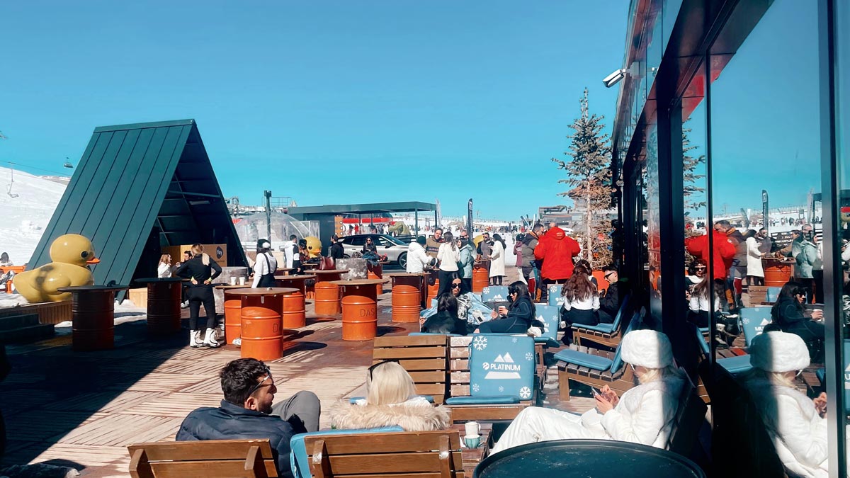 Develi Kapı’daki oteller bölgesi, tüm kapılar arasında en ortam yapmalık nokta. Kayakçılar ve snowboardcular genellikle zirvelerdeki cafe ve restoranlardansa buradaki otellerin lounge barlarında, kara attıkları şezlonglarda veya after ski party’lerinde takılıp yorgunluk atıyor. Siz de kaymasanız bile güneşin, müziğin ve karın tadını çıkarabilirsiniz.
