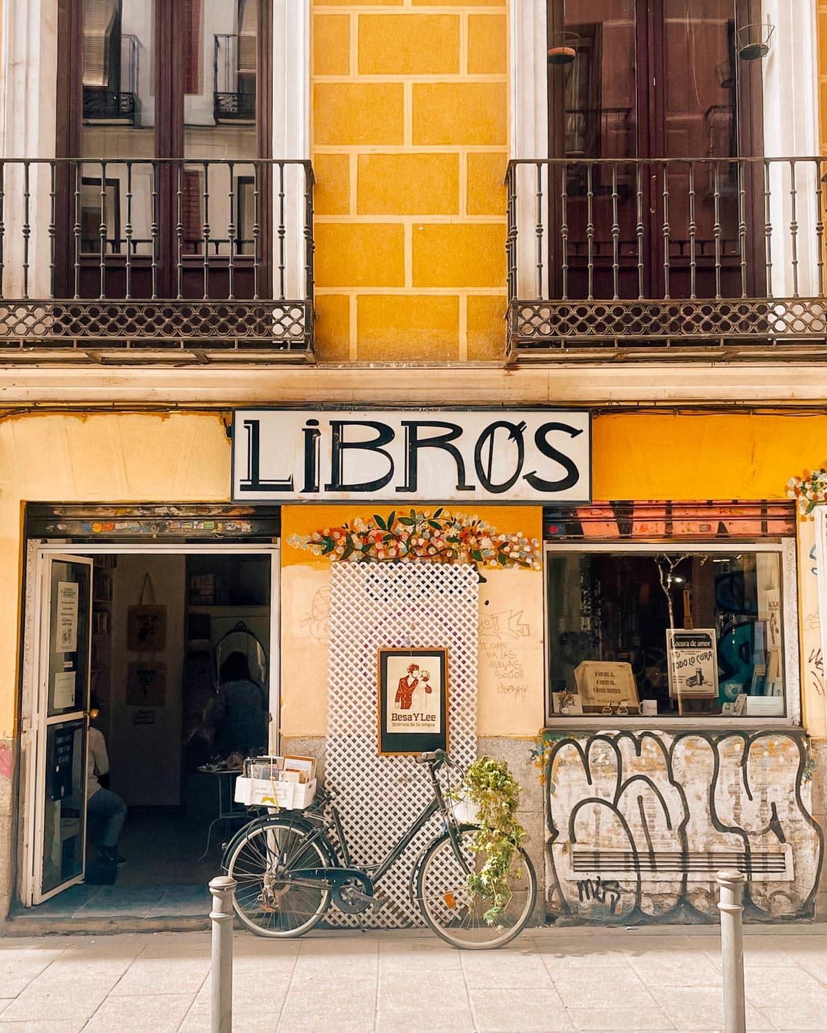 Libros Para Un Mundo Mejor, sessiz sakin bir kitabevi. Belki instagramdan gözünüze tanıdık gelebilir çünkü fotoğraf çekip paylaşmak için popüler bir nokta. İçeride yenili eskili pek çok kitap var, ilgiliyseniz biraz karıştırmanız gerek. Bunun dışında kartpostal, sırt çantası gibi şeyler de satıyorlar. Kara kedisi dünya tatlısı. Konum için tıklayın. Haritada 24 numara.